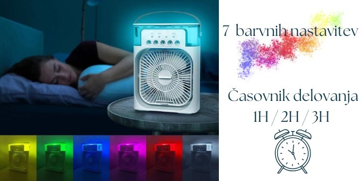 LED osvetlitev: Uživajte v 7 barvnih nastavitvah svetlobe, ki se lahko nežno prelivajo ali ostanejo na izbrani barvi.