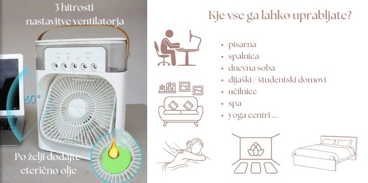 Osvežitev in sprostitev: Nežna meglica in pomirjujoč zračni tok ustvarjata občutek svežine ter naravne lahkotnosti.